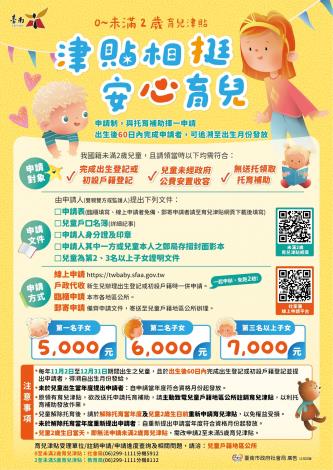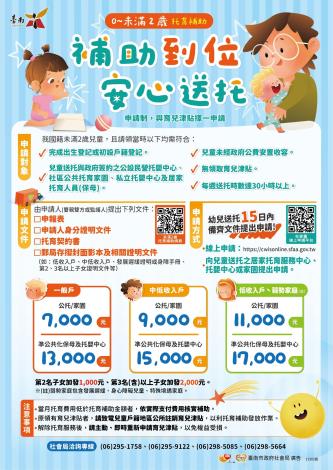 【2至未滿5歲育兒津貼相關問題請洽】:臺南市各地區公所或臺南市教育局06-299-1111分機8112。